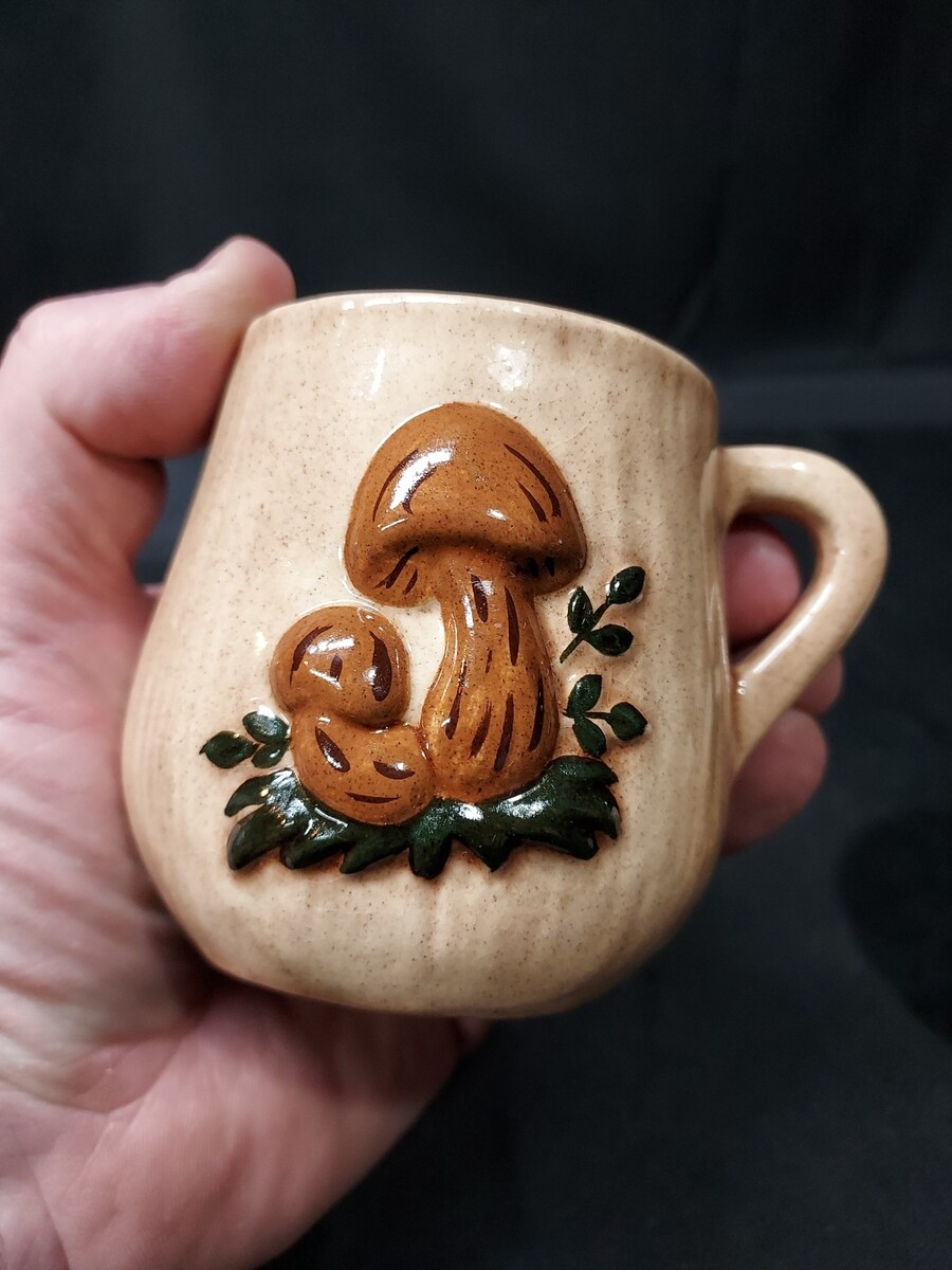 1970s Mid Century Modern Mushroom Ceramic Coffee Mug Cups Lot Of 2 - NO CHIPS. Condition is Used. Shipped with USPS Ground Advantage.