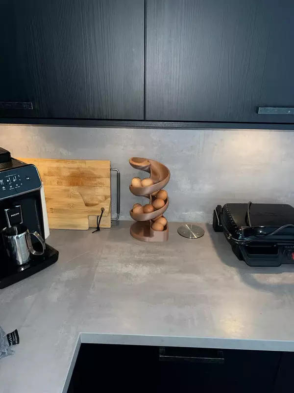 Deze spiraalvormige eierhouder is niet alleen functioneel, maar ook een stijlvolle aanwinst voor elke moderne keuken. Dankzij het unieke rolmechanisme rollen de eieren automatisch naar beneden, waardoor ze gemakkelijk te pakken zijn. Het is de perfecte combinatie van gemak en esthetiek.