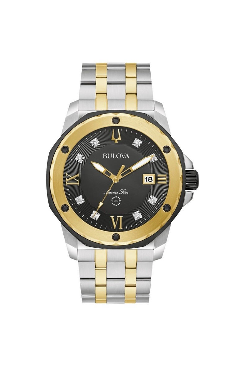 Bulova Men's Marine Two-Tone Stainless Steel Watch black Dial 98D175