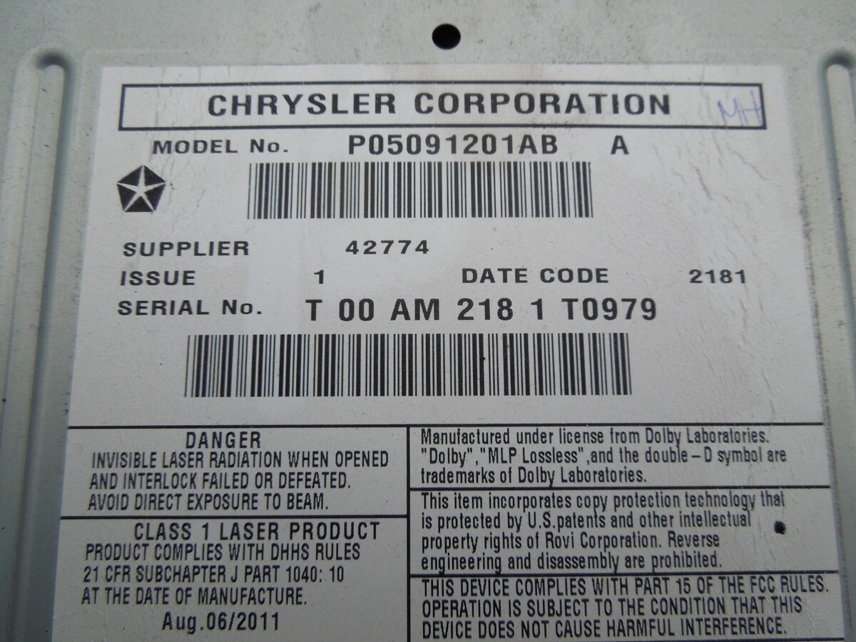 2012 Dodge Caravan RBZ cd player radio assembly navigation sirius MP3 P05091201A