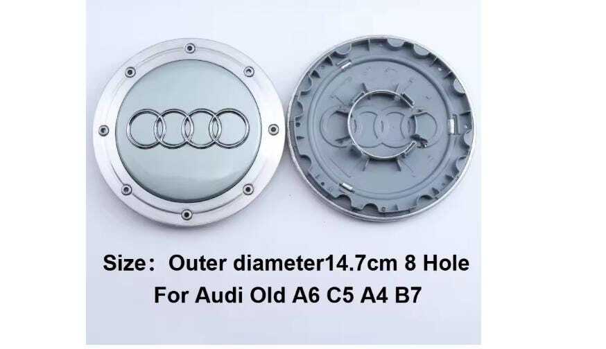 Replace your old or missing Audi wheel hub caps with this set of 4PCS 147mm center caps, specially designed for older Audi models. Featuring the classic Audi rings logo, these hub covers restore your wheels to a clean, factory-style look. Made of high-quality ABS material, they are durable, weather-resistant, and easy to install.