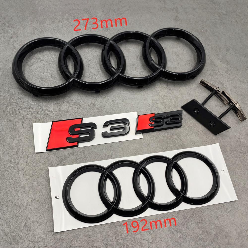 Gloss Black Audi S3 Emblem Set | 273mm Front Rings 192mm Rear Rings S3(Black/Re