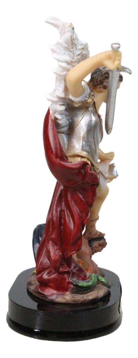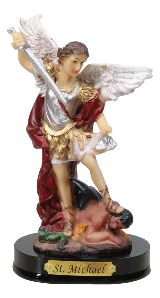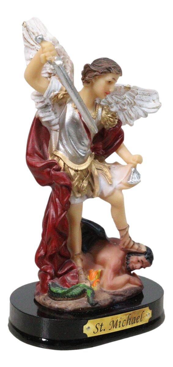 Archangel Saint Michael Wielding Sword Crushing Satan Figurine With Name Base