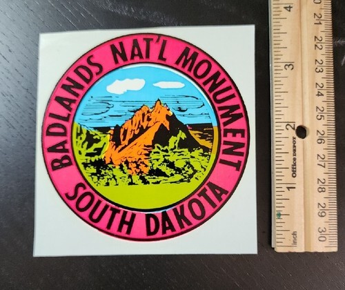 ENCO INC Badlands Nat'l Monument South Dakota VTG Travel Luggage Water Decal
