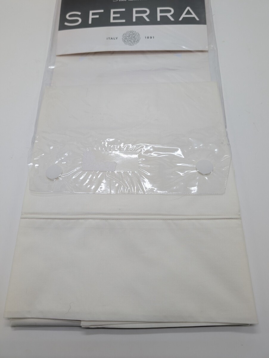Sferra Isabella Ivory King Pillowcases Solid 100% Cotton Percale 500TC Italy NEW
