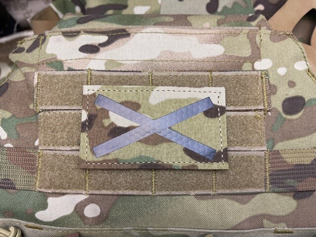 Our Version 1 Saltire/Cross of St. Andrew call sign patch made from a layer of laser cut Multicam pattern 500D Cordura over a layer of 3M black IR material. The patch measures 3.5" x 2" / 90mm x 50m with VELCRO Brand hook fastener backing.