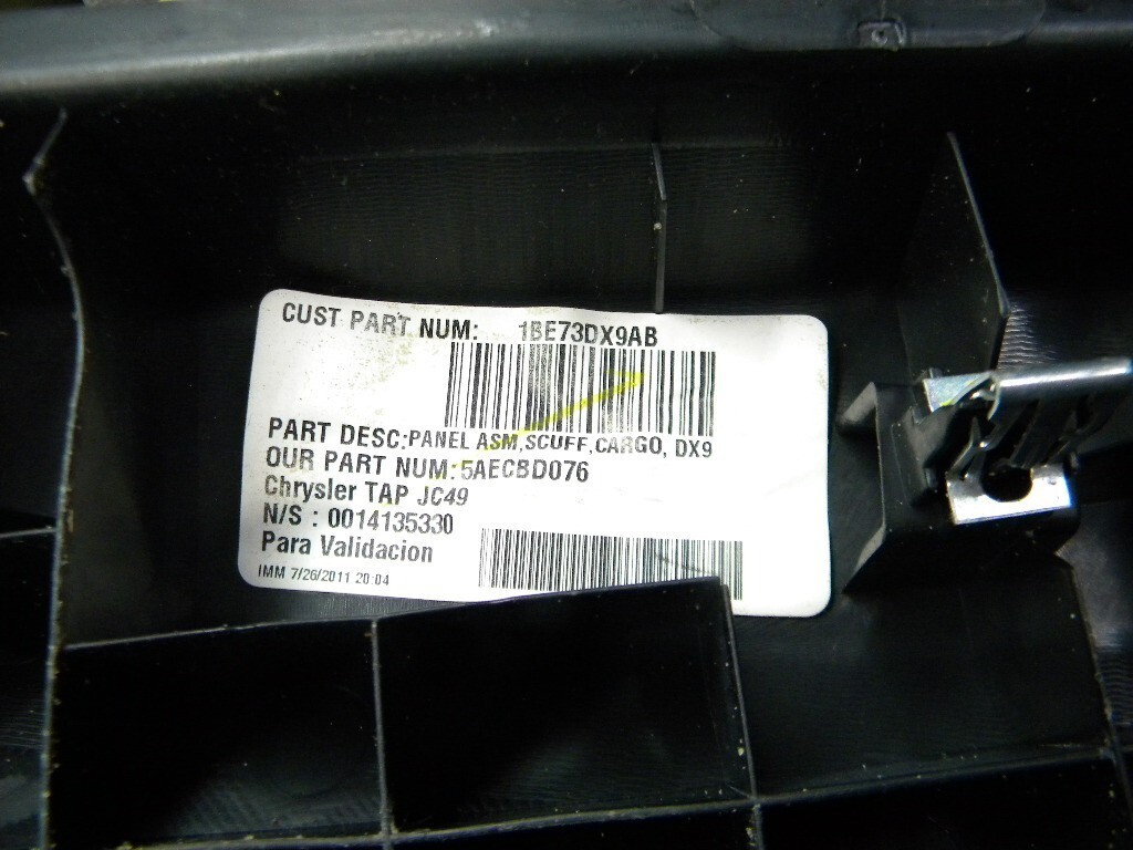 2011 - 2015 Dodge Journey Black OEM Trunk Scuff Sill Cover Trim 1BE73DX9AB. This is a genuine Dodge OEM part, not the cheap aftermarket stuff. We