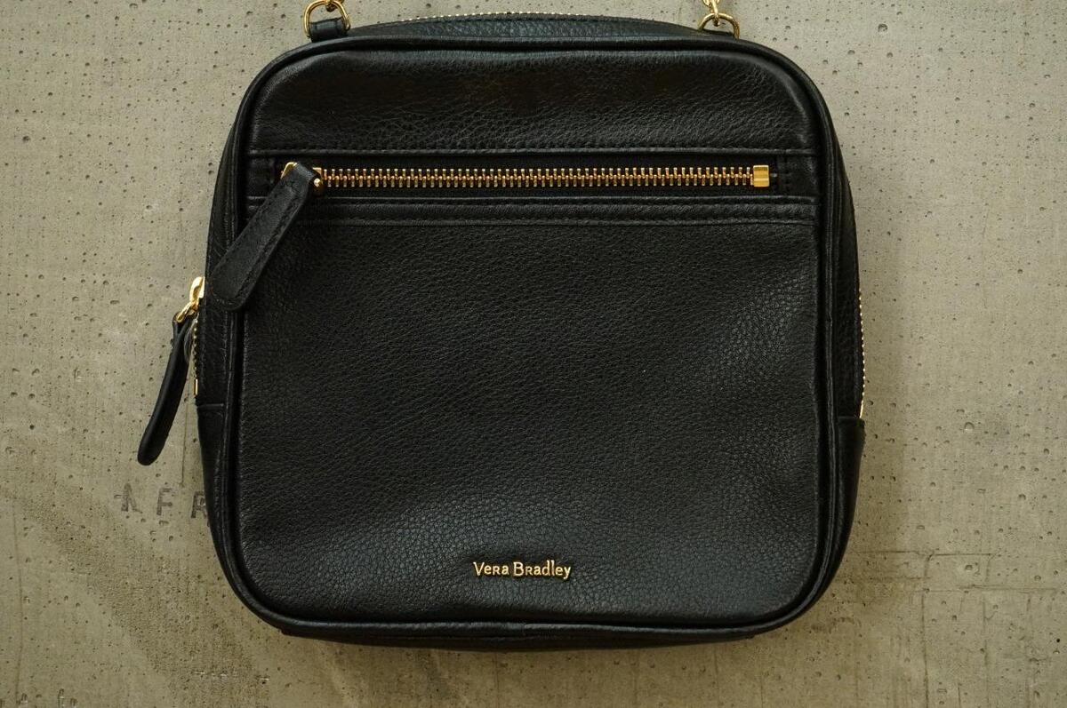 Designer Purse VERA BRADLEY Elena Black Pebbled Leather Crossbody Bag