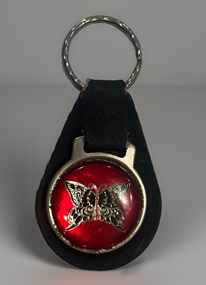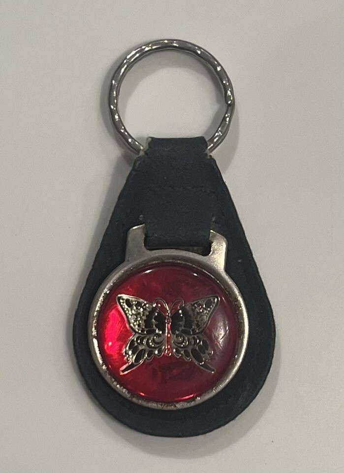 Excellent condition!!! Pictures are difficult to take because of the round shape and reflection of the gemstone look. Beautiful keychain!! Very unique!!! Awesome vintage butterfly keychain!!! I have not seen another like this one. Deep cat eye type color and look!! Very nice!! Very cool!!