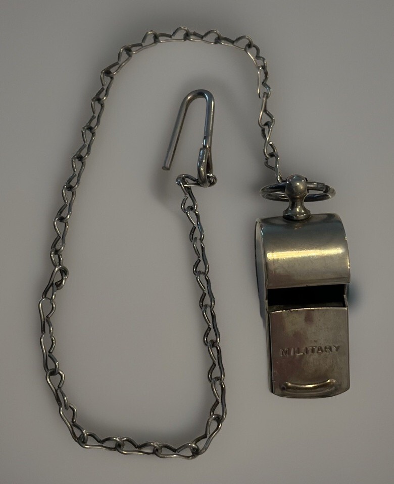 VTG WWII U.S. MILITARY WHISTLE w/ BALL & CHAIN CHROME PLATED BRASS USA ORIGINAL