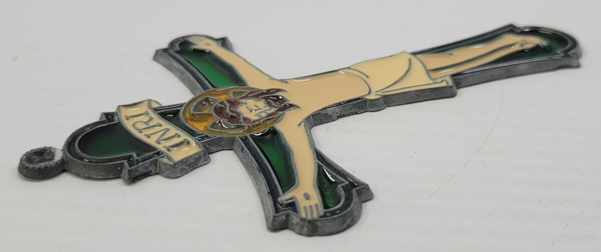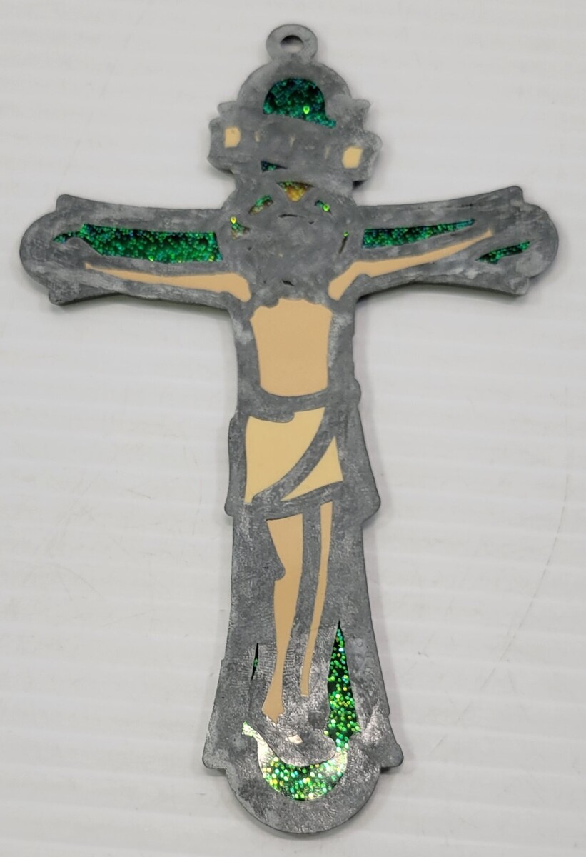 H) Vintage Suncatcher Stained Acrylic Glass Jesus Crucifix Hanging Ornament