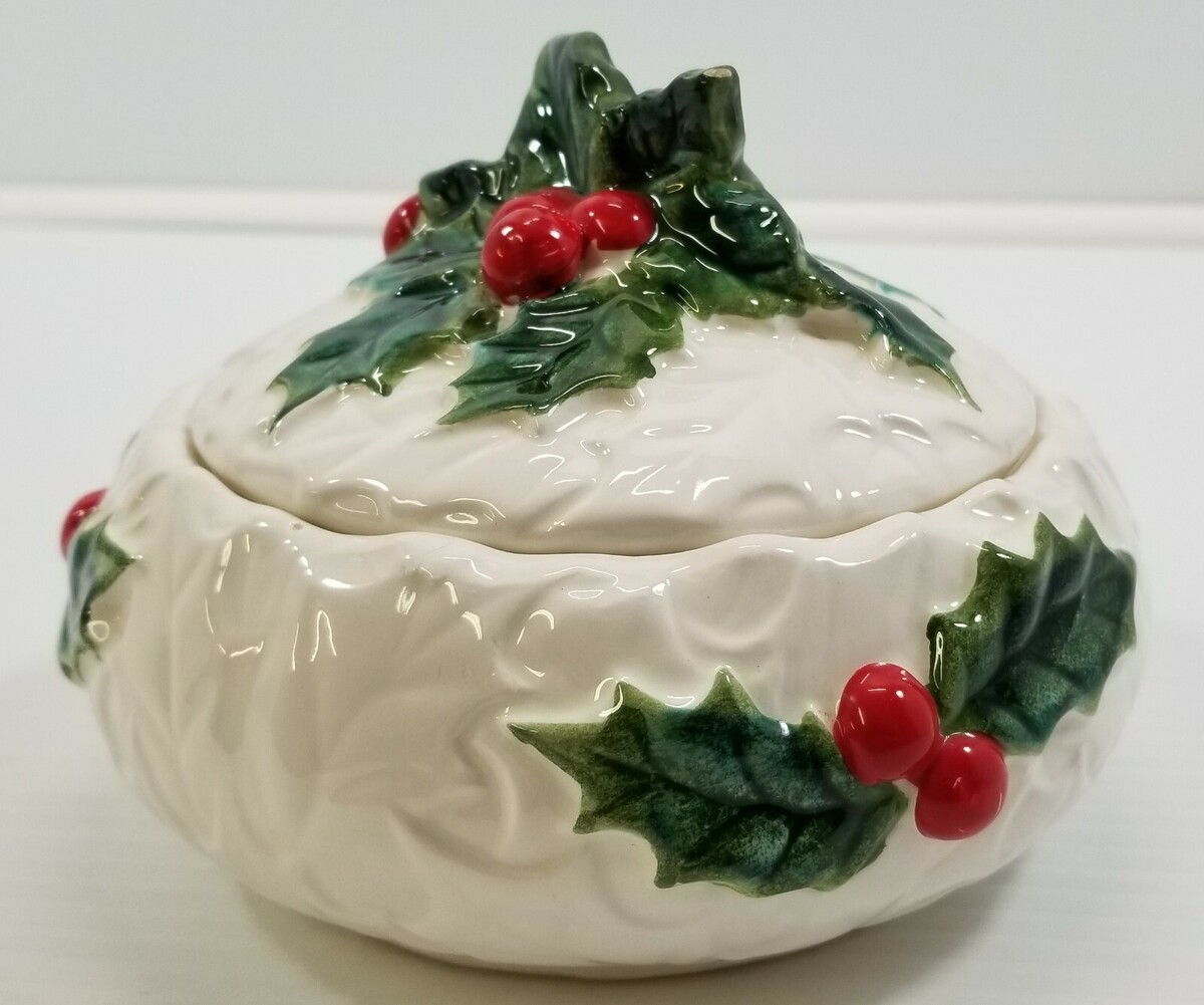 Vintage Lefton Christmas Holly Candy Bowl with Lid Japan 1970/71