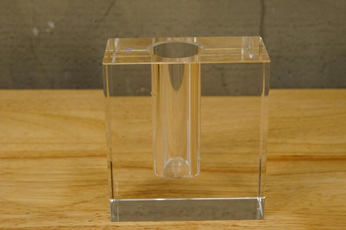 Retro MCM Tizo Crystal Paperweight Block Cubic Paperweight Bud Vase