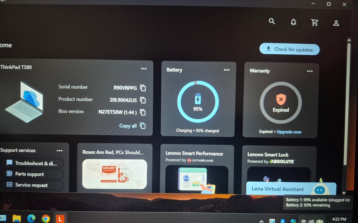 The Lenovo Vantage App is installed, was run and all Drivers, Firmware and Bios were updated.