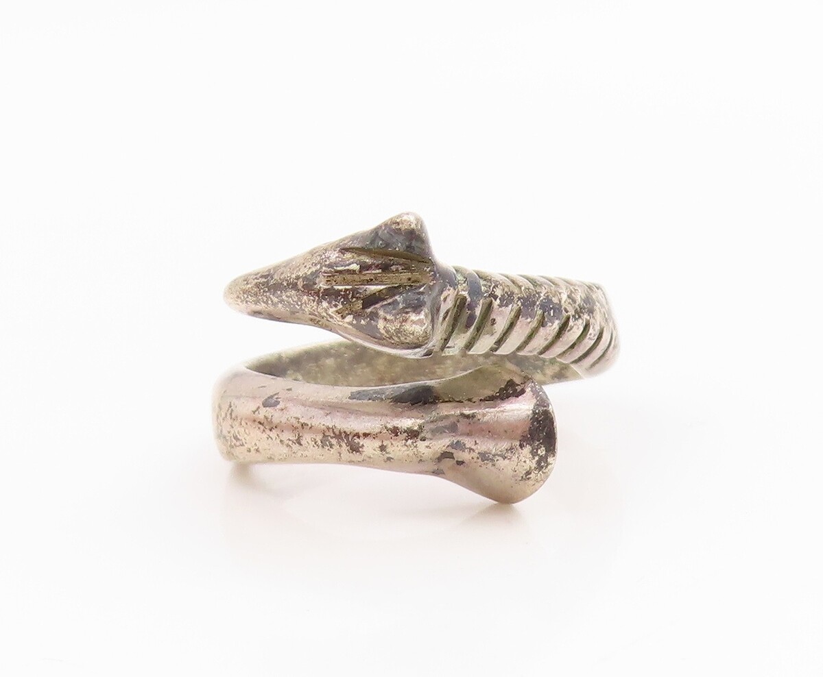 925 Sterling Silver Vintage Ring Classic Giraffe Motif Bypass Band Sz 5 RG35406