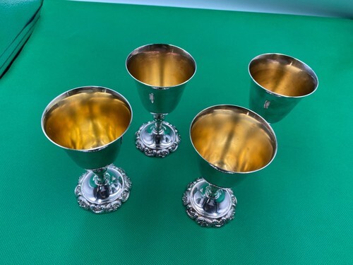 4x Wallace Silverplate BAROQUE #236 Small Wine Goblets with Gold Lining 4 1/2"