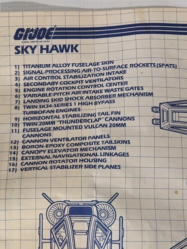 1985 Gi Joe Ciel Hawk Véhicule Bleus Instructions