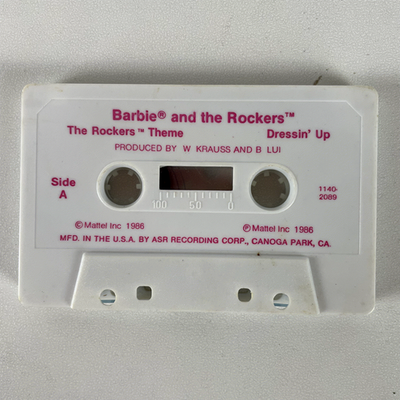 Relive the sound of Barbie and the Rockers? with this vintage music cassette. It's a single cassette tape from Mattel Inc., copyright 1986, identified by the catalog number 1140-2089. A nostalgic piece for collectors, this cassette brings the iconic Barbie and the Rockers? music to life.