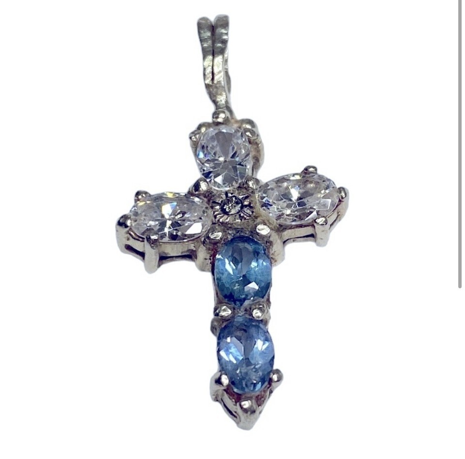 925 Sterling Silver Blue Crystal Small Cross and similar items