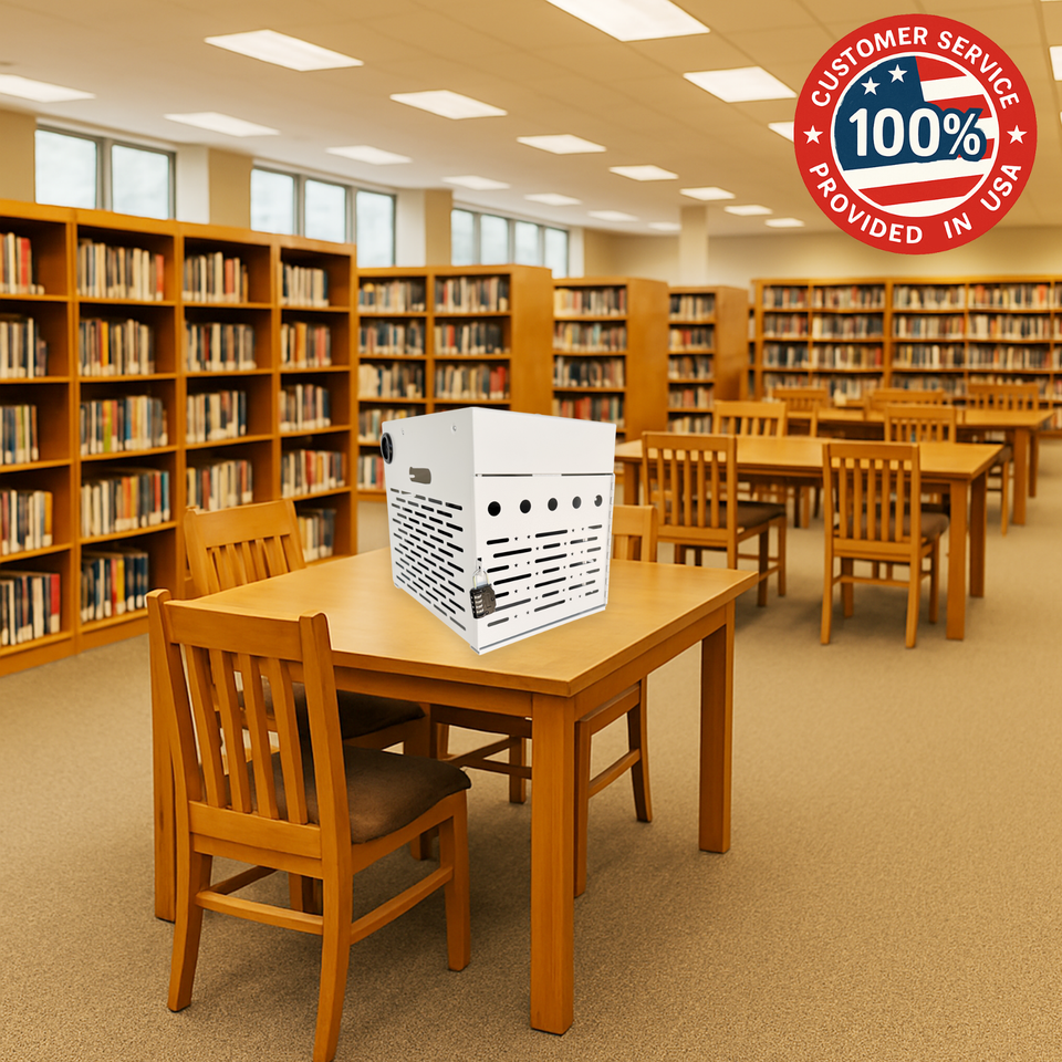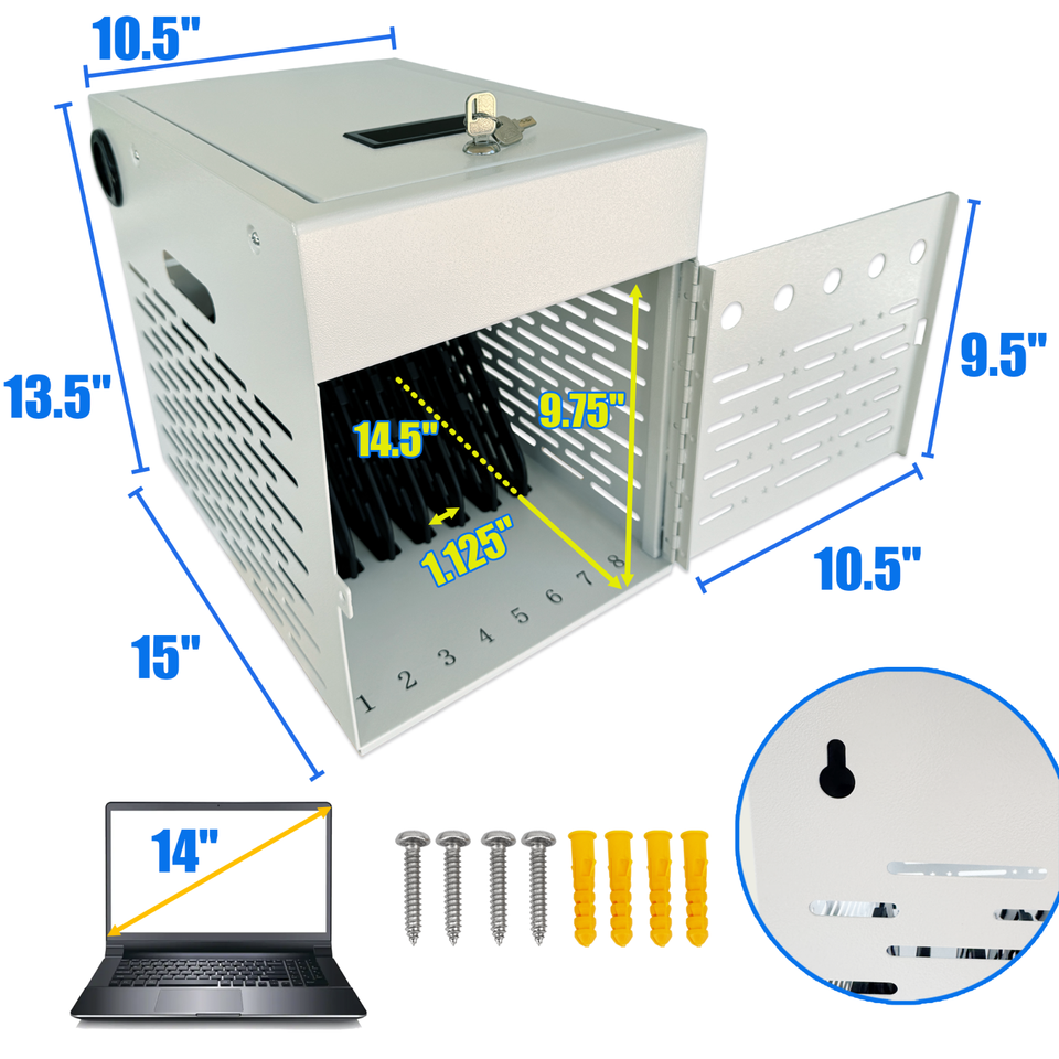8-Device Tablet Charging Station, Lockable Steel Case Fits 14" Chromebooks, iPad