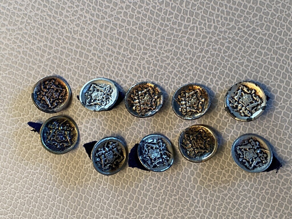 ANTIQUE CUT STEEL BUTTONS 10 With Crest Copper/Steel Shank 5/8"