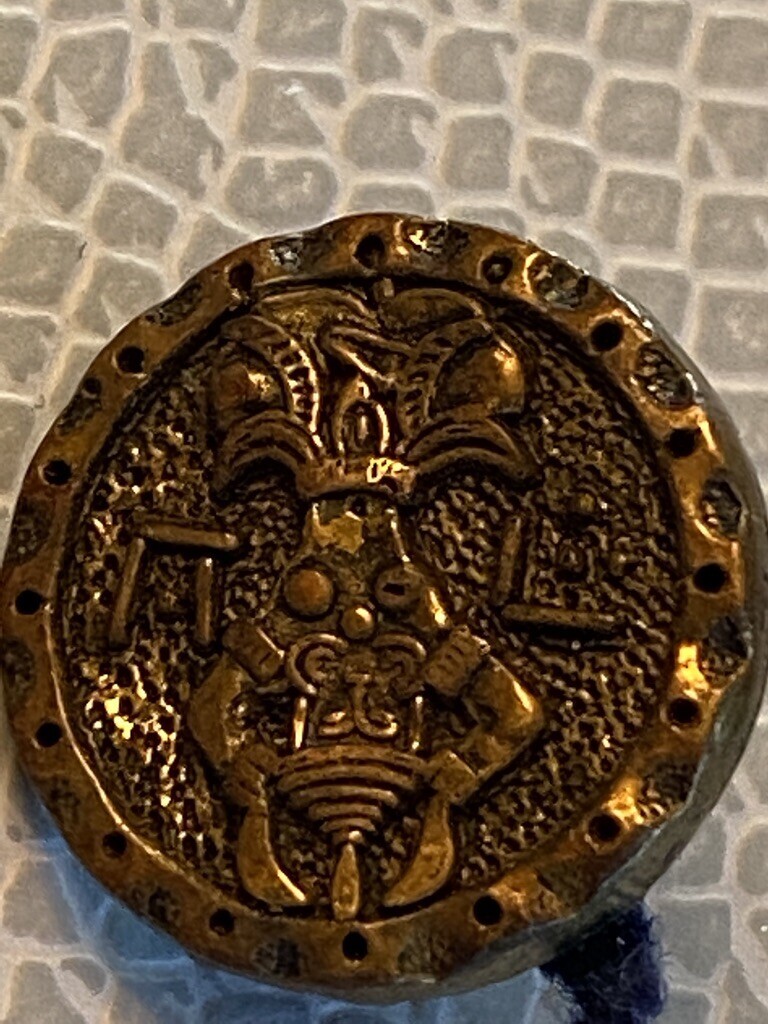 ANTIQUE CUT STEEL BUTTONS 10 With Crest Copper/Steel Shank 5/8"-I am not sure if the steel wore and there's copper underneath, some have a coppery sheen. The shield is not crisp.1 bonus button included.