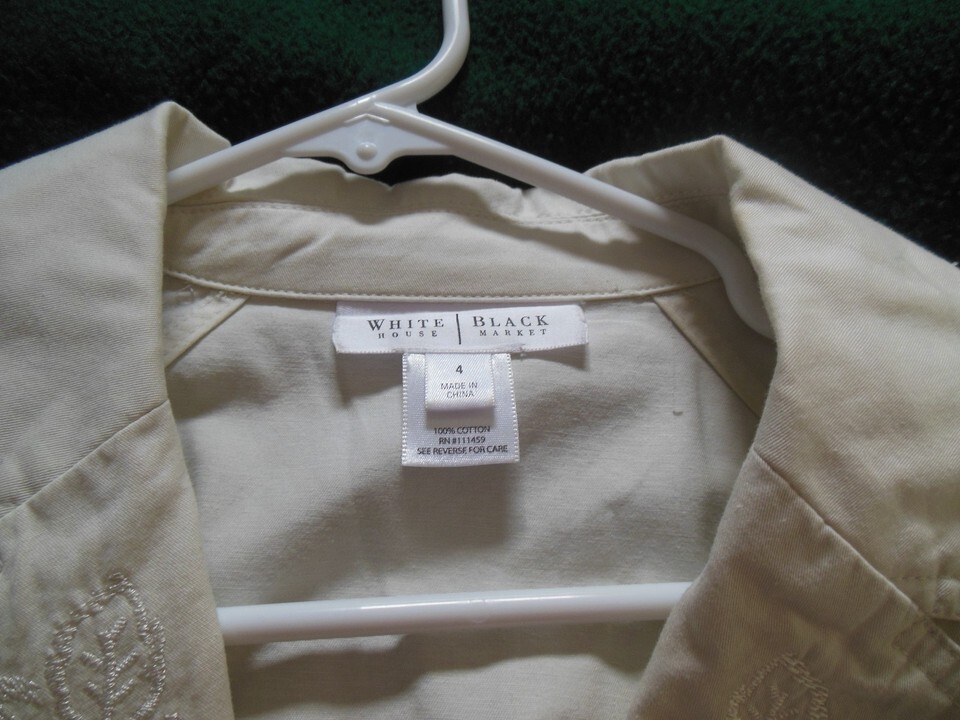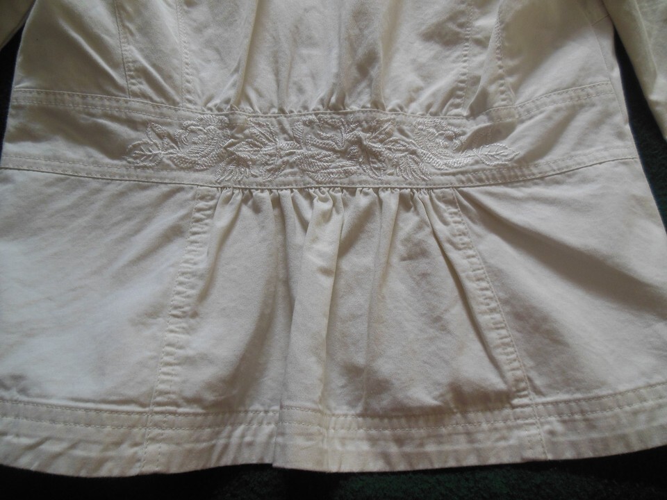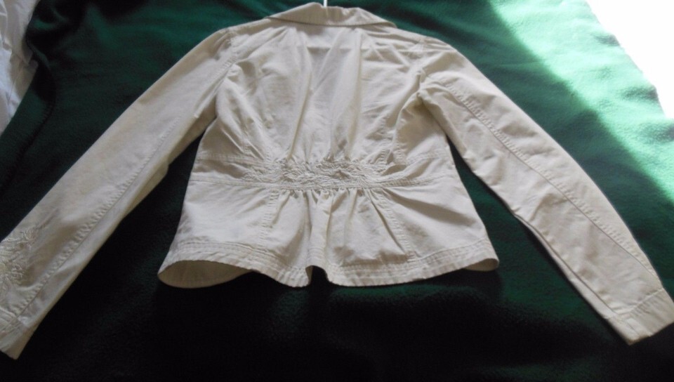 White House Black Market Women's Off White Jacket Size 4 100% Cotton Floral