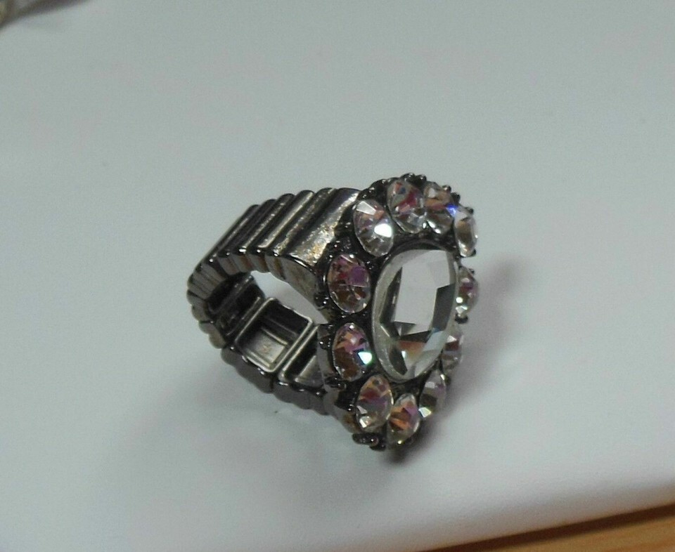 Large Shiny Tear-Drop Shaped Rhinestone Silver-Tone Stretch Ring