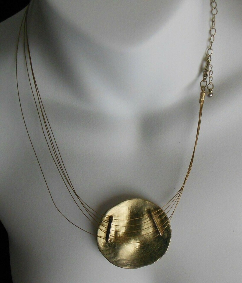 Fashion Hammered Gold Tone 3 multiple Wire Strand Medallion Necklace 9.5"