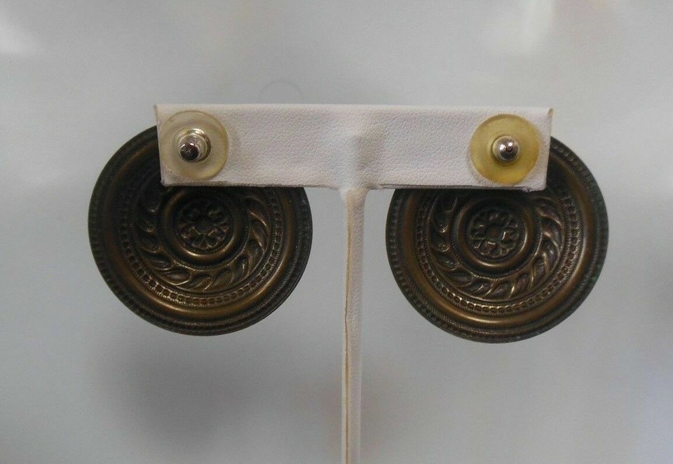 Large Green Enamel Circular Pierced Earrings Lightweight