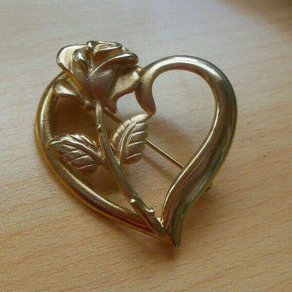 Vintage Signed ROC Gold-tone Heart Rose and similar items