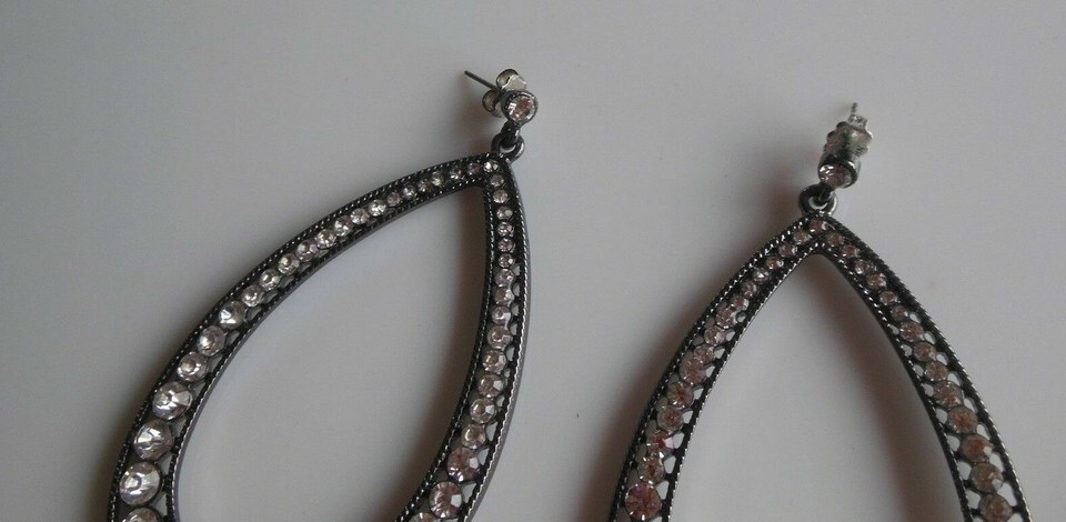 Silver Tone Crystal Rhinestone Teardrop Hoop and similar items