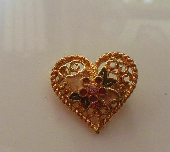 Vintage Gold-tone Enamel Filigree Heart and similar items