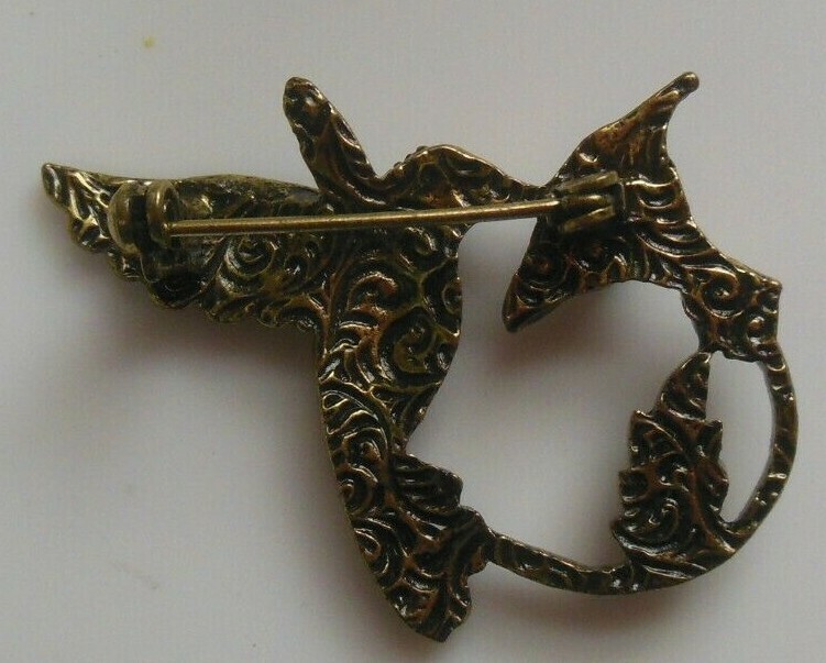 Vintage Humming Bird Brooch Enamel Flower/Leaf, Rhinestones