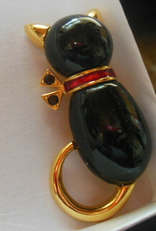 Vintage Signed AK "Anne Klein" Gold-tone Black Cat Brooch