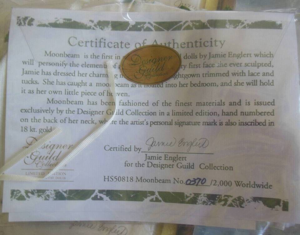 This vintage Designer Guild MOONBEAM porcelain doll is a limited edition and is signed by the designer.