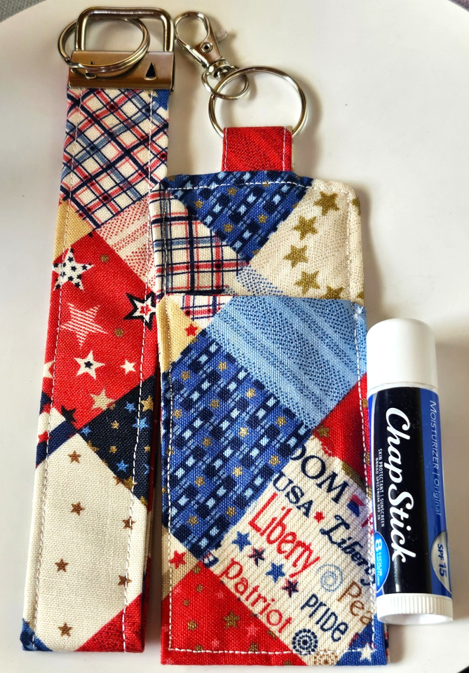 Hand-crafted Fabric Key Fob Wristlet & Matching Chapstick/Lipstick Holder #2