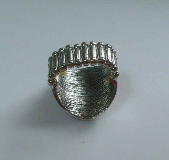 Silver-Tone Reddish/Brown Enamel & Black Stone Flower Stretch Ring