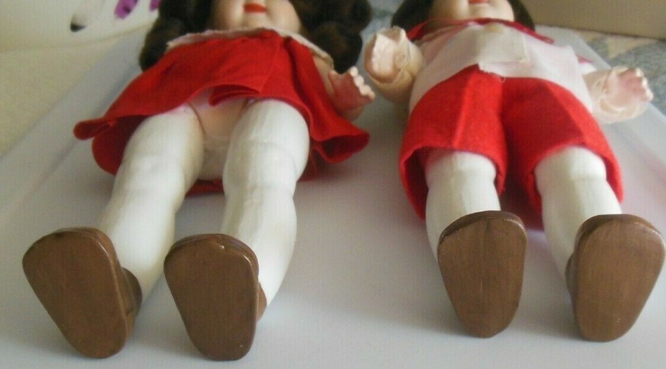 Vintage Bisque/Porcelain Googly Eye Dolls Jointed Girl Boy Painted Legs, Shoes