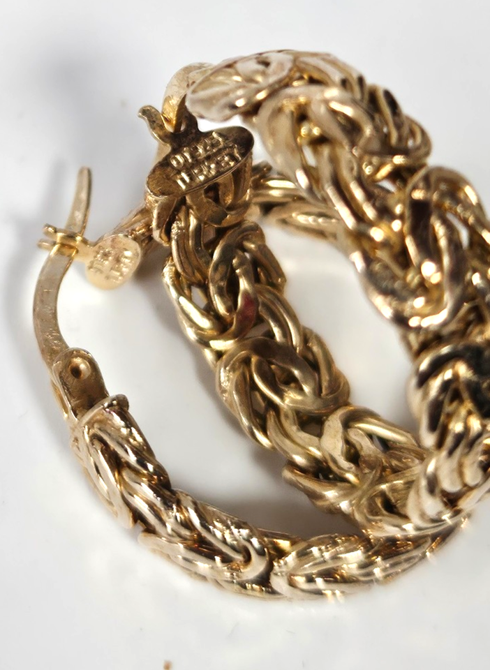 Signed OT 925 Turkey Byzantine Hoop Earrings 3/4” Diameter