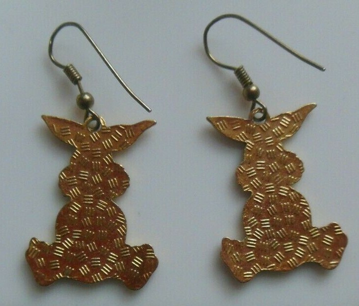 Vintage Cloisonne Enamel Bunny Rabbit Holding Flower Hook Earrings