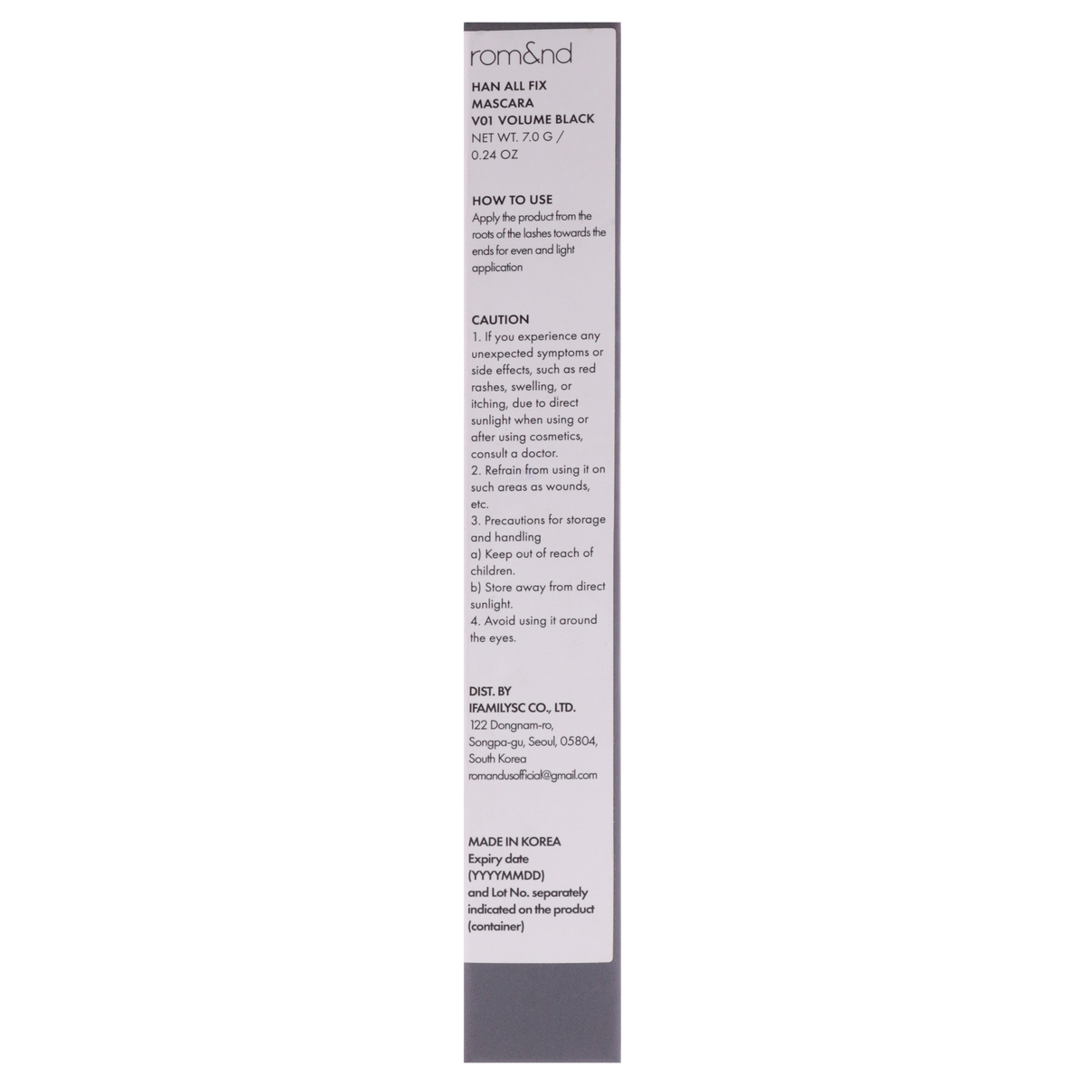 Han All Fix Mascara - V01 Volume Black by Rom&nd for Women - 0.24 oz Mascara