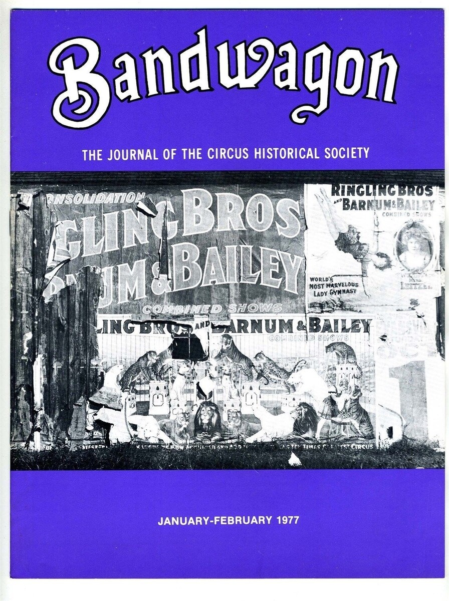 Bandwagon, the Circus Historical Society's bimonthly journal, publishes captivating articles relating to circus history. This is the January February 1977 issue with Remnants of Circus Posters on the cover With well illustrated articles on the Sparks Circus, Season Stickers, the inside workings of a great circus and much more in this issue.