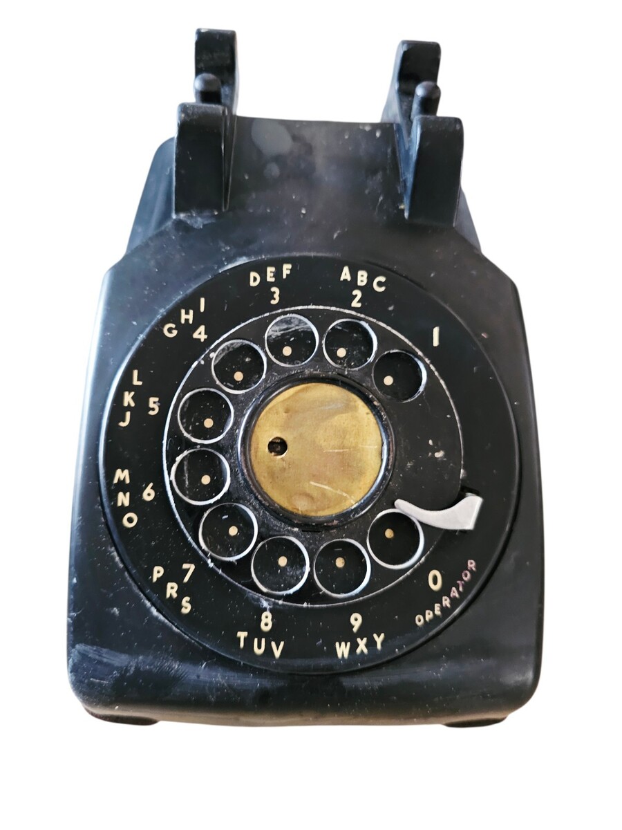 The Vintage Western Electric 500 Bell System Black Rotary Telephone is a collectible piece of history from the United States. Made by Western Electric, this telephone features a classic black rotary design and comes with a cord. While it is untested, it holds sentimental value for those who appreciate vintage technology and telecommunications equipment from the mid-20th century. Perfect for collectors or enthusiasts of retro telephones, this piece offers a glimpse into the past and a touch of nostalgia for those who remember a simpler time in communication.