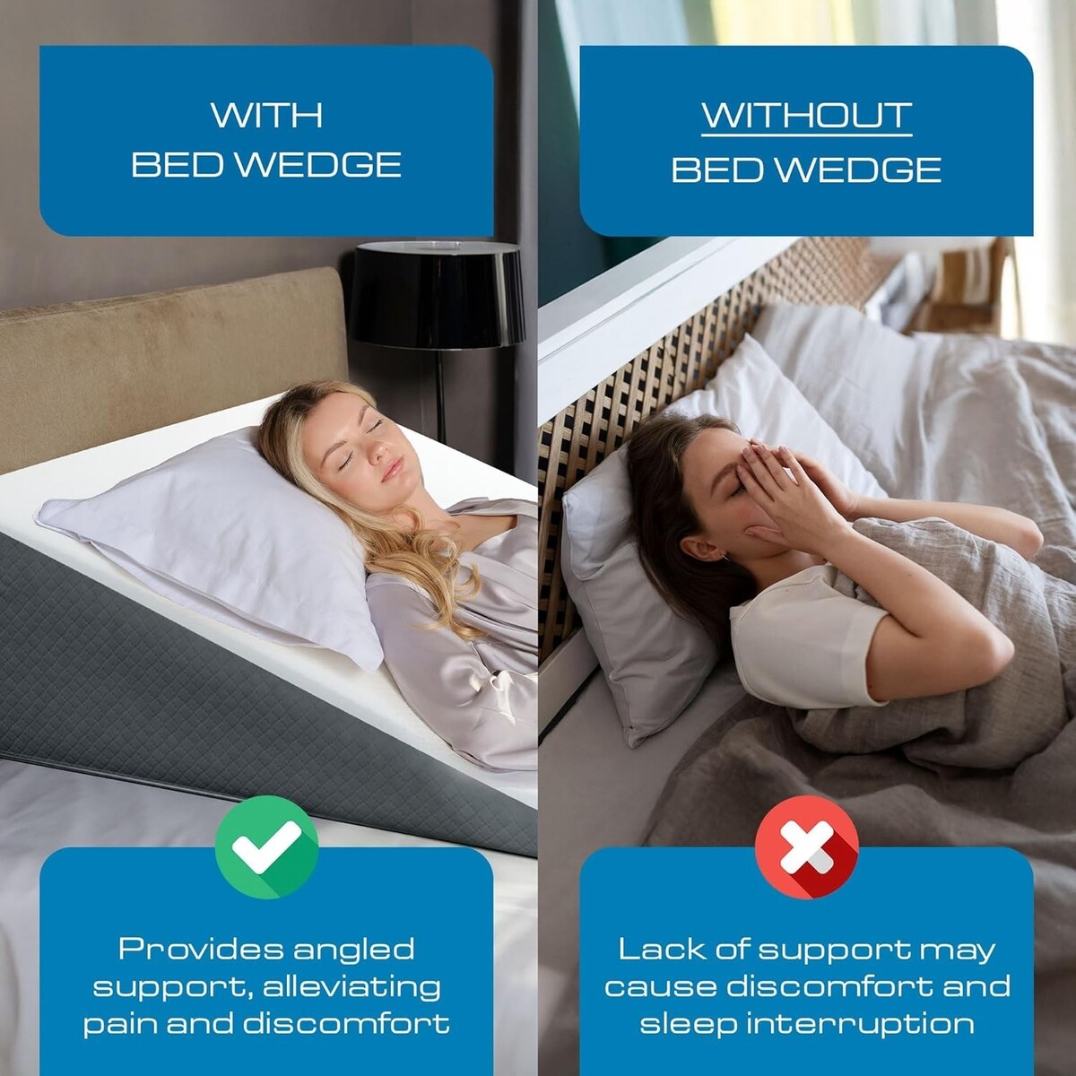 Our extra-large wedge pillow is 31 inches wide, that's half the width of a queen bed, giving you more coverage and plenty of space to roll, toss, and turn just like you normally sleep. With the extra room, you can truly get comfortable and make full use of your bed?s real estate.