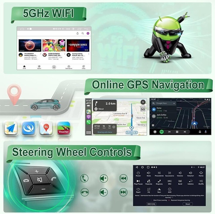 Special Features: Wireless CarPlay, Android Auto, Bluetooth 5.0, Split?screen, 1080P HD backup camera, GPS navigation, Wi?Fi hotspot, steering wheel control (SWC) support?