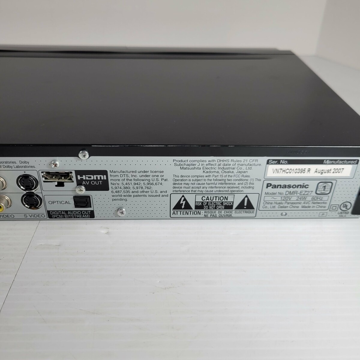Panasonic Model DMR-EZ27 DVD Recorder Tuner Player Tested - Record AND Play!. Condition is Used. Shipped with FedEx Ground / FedEx Home Delivery.
