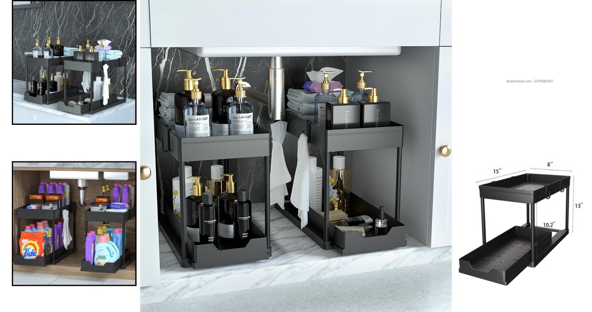 Elegant Black Sliding Drawer Baskets - 2 Pack Under Sink Storage Organizers