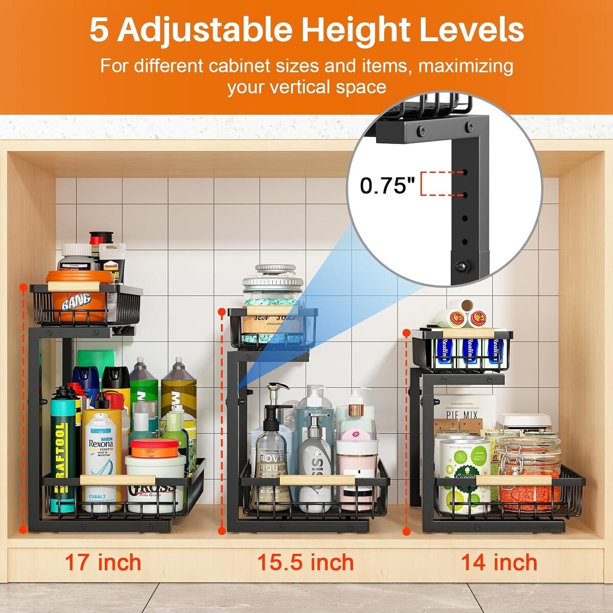 Sturdy Under Sink Organizer: Height Adjustable 2 Tier Storage for Kitchen & Bath
