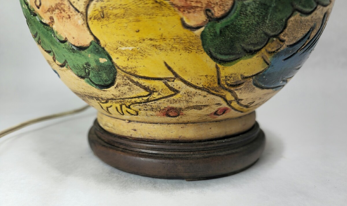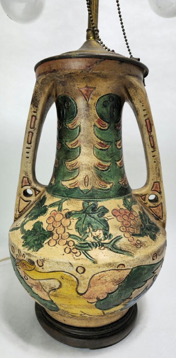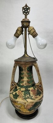 Vintage Early 20th Century Colorful Majolica Double Socket Lamp From Vase